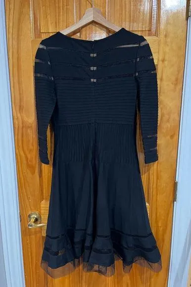Tadashi Shoji Black Illusion Mesh Stripe Dress Pintuck Pleats Jersey Size Small - $51 - From JayLynn