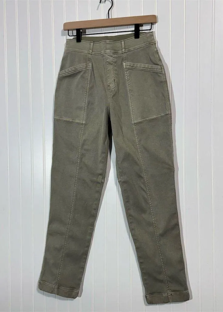 Spanx women’s utility cargo ankle pants in a versatile olive green twill. These feature a high-rise... Show more