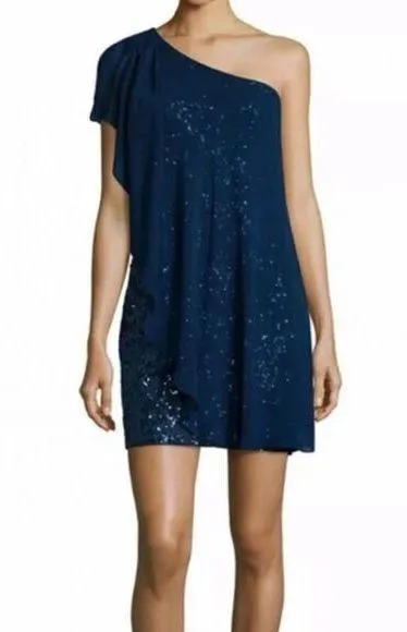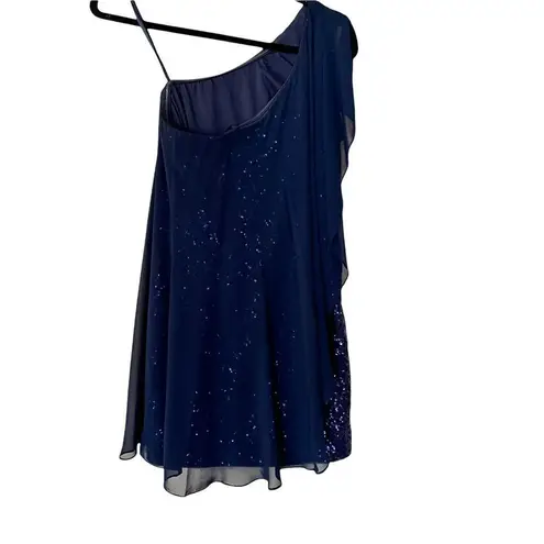 Stunning AIDAN MATTOX sequin one shoulder mini dress Sheer overlay All over floral navy blue sequin... Show more