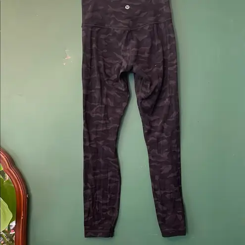Lululemon Black & Grey Camo Print Leggings waist 12" rise 9" inseam 25"