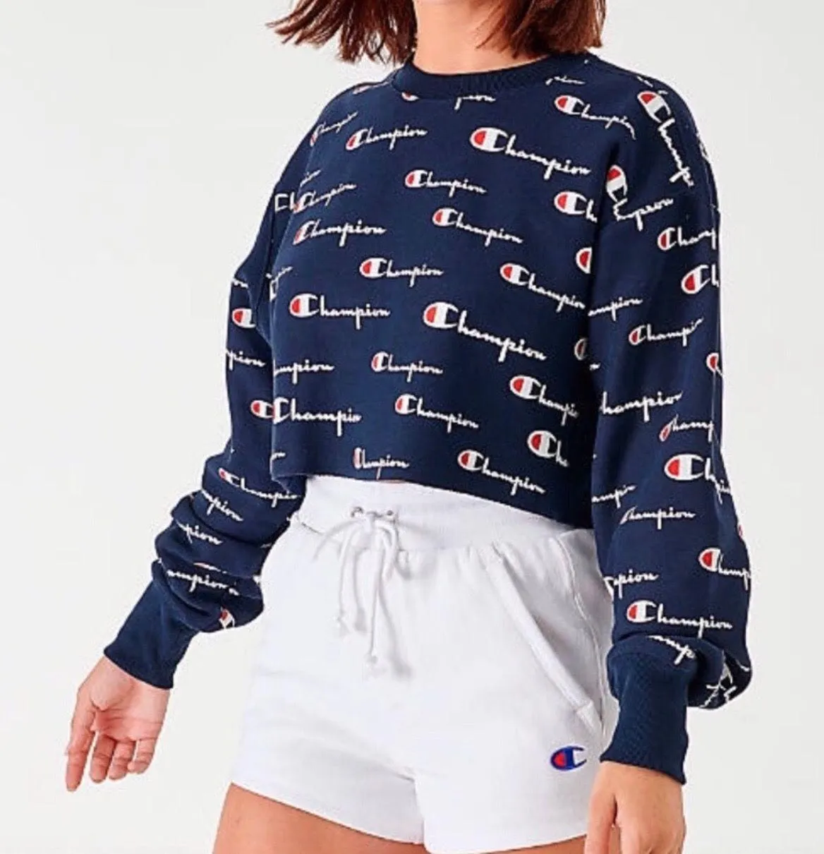Brand new with tag! Navy blue color Champion cropped sweatshirt with White Champion logo prints all... Show more