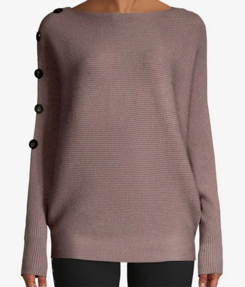 in Blush Voluminous dolman sleeves and button accenting add to the charm of this ribbed knit from P... Show more