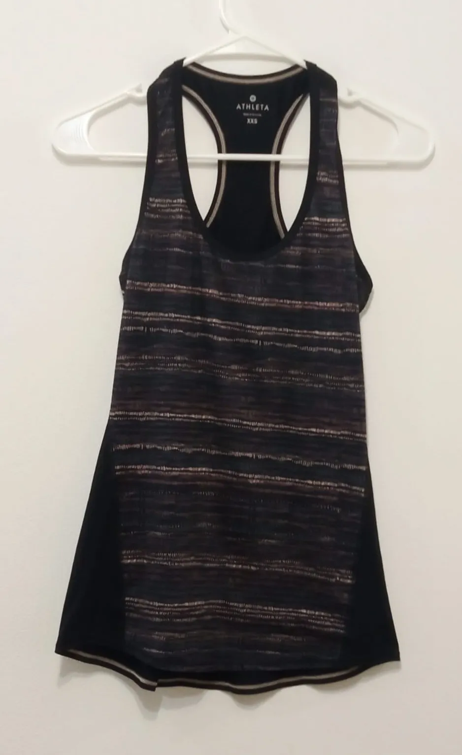 Women’s Athleta Sleeveless Top, Size XXS, Racerback Design. Multicolor print in black, mauve, slate... Show more