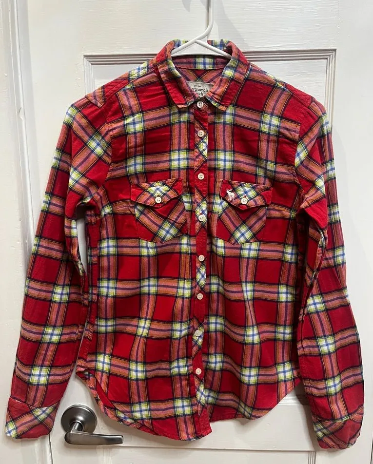 A&F Abercrombie & Fitch Plaid oxford Button Down MOOSE LOGO All buttons have logo on them The prim... Show more