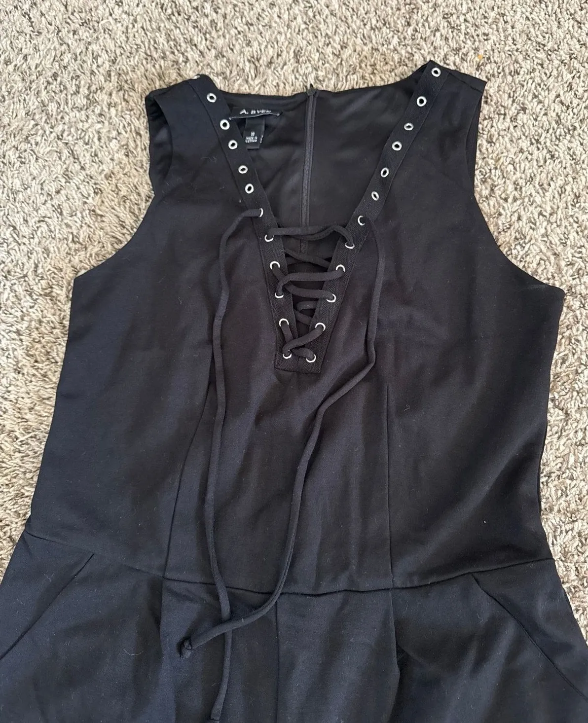 A.Byer Women's Black Sleeveless Pants Jumpsuit Size 11 30" inseam 56" length 39" length from... Show more