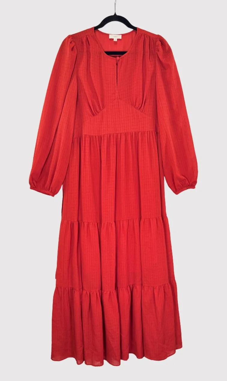 Good Pre-Owned Condition. Photos are provided to give you a thorough view of the item's condition, feel free to check them out. Size: Womens US Small Color: Red Measurements: Waist / Length / Inseam, etc. measured in flat inches. Measurements approximately Chest: 17 inches Waist: 13 inches Hem: 38.5 inches Sleeve: 23 inches Length: 51.5 inches NOTE: Please look at the measurements before purchasing. If you are uncertain about the size, lay a similar item flat and compare its measurements with ours. Weve got more items you might love! Please take a look at our other listings. Thank you, and have a great day!