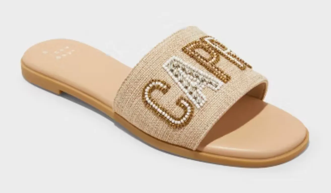 Evoke coastal charm with these beaded Capri slides. This slip-on sandal presents a raffia-like upper... Show more
