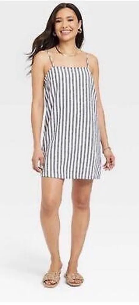 A‎ New Day Target Brand Linen Striped Mink Dress XL Gray - $15 - From Christine