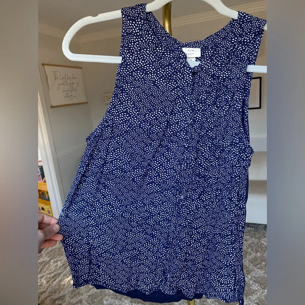 A New Day Blouse Navy White Cottagecore Summer Festival 4th of July Sleeveless