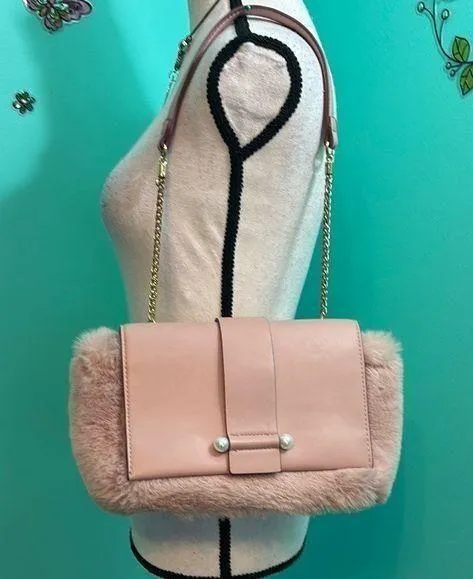 A new day brand Chic and stylish pink shoulder bag features luxurious faux fur trim & vegan leather,... Show more
