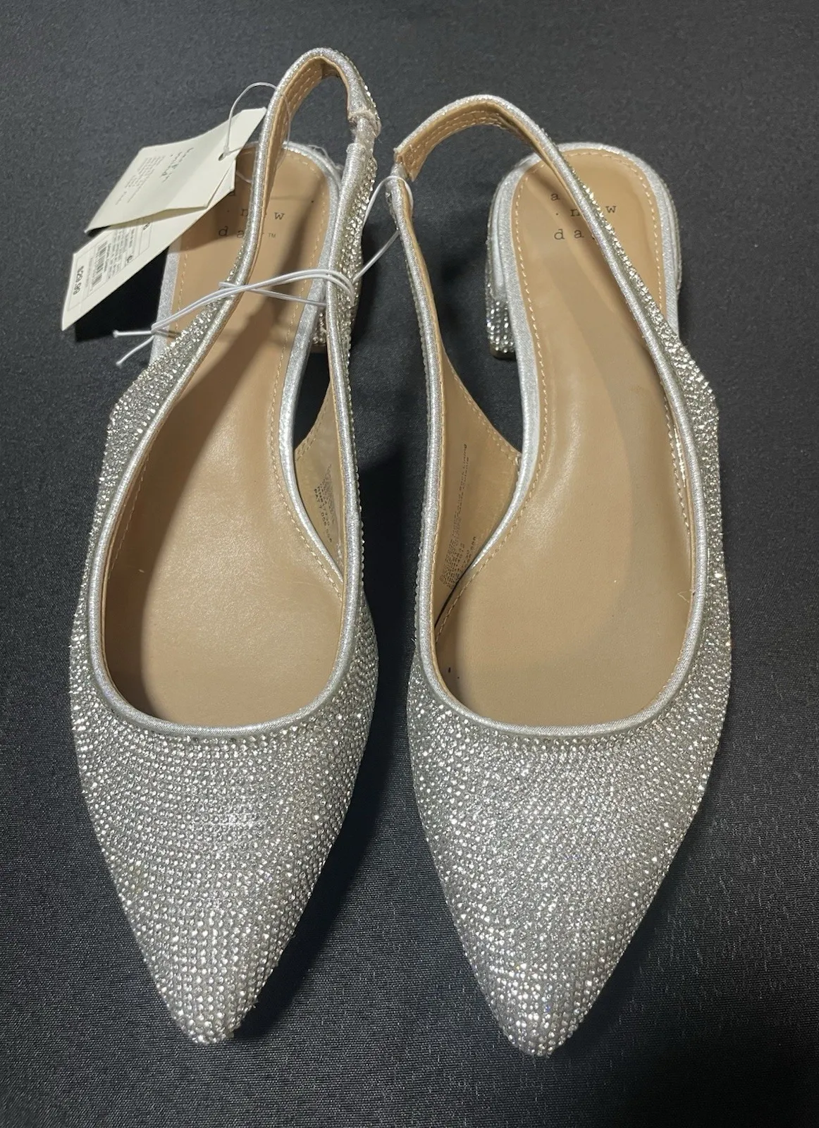 The New Day Women's Elle Rhinestone Slingback Pointed Toe Heels in silver are a stylish and elegant... Show more