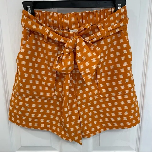 A New Day Orange White Checker High Waist Paper Bag Waist Shorts Women’s Size XS Excellent Use... Show more
