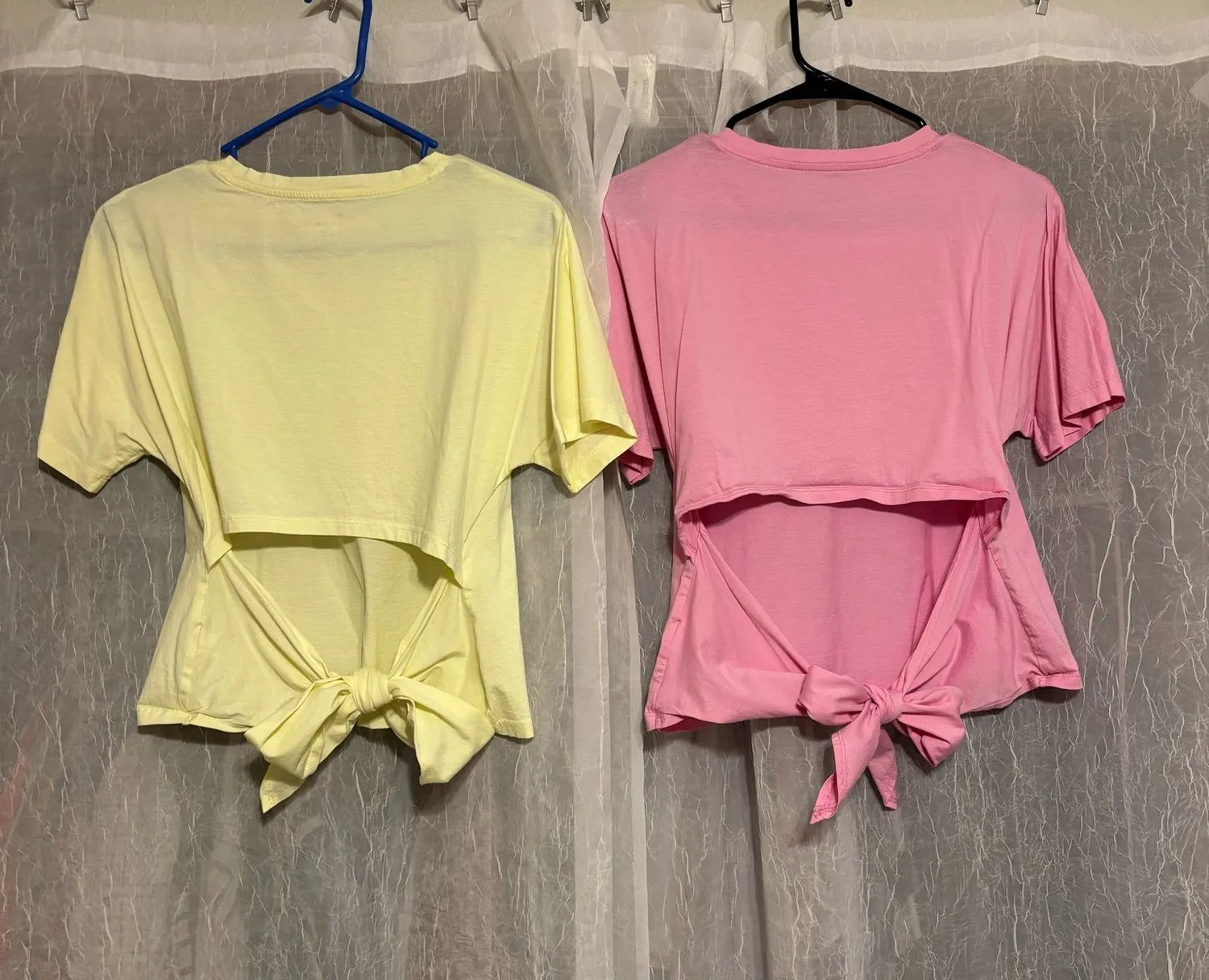 Pink and yellow tie back short sleeve cropped women’s tops small Multiple - $20 - From Aubrey