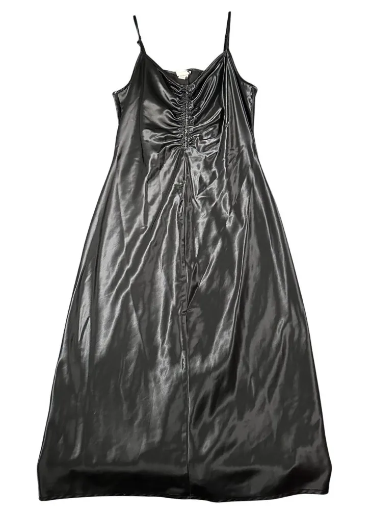 A New Day S Black Satin Spaghetti Strap V-Neck Slip Dress Midi Sexy Sleek. 100% Polyester. Armpi... Show more