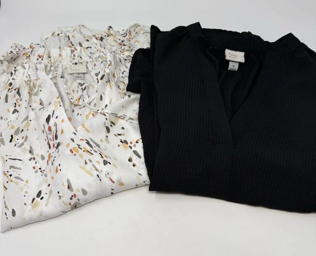 Both size medium A New Day set of two long sleeve blouses Black v-neck blouse with puff sleeves W... Show more