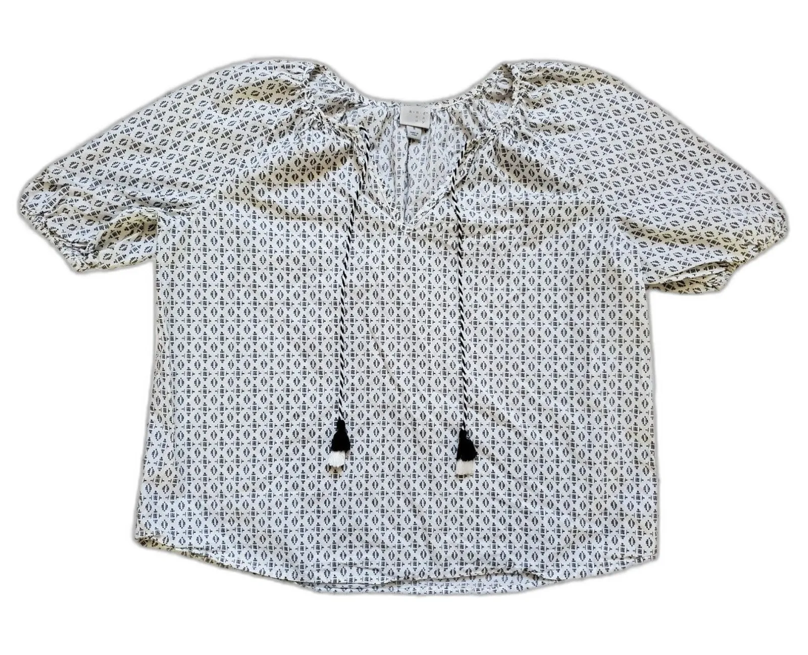 A New Day Shirt Women Small White Boho V-Neck Blouse Top Tassel Short Sleeve Size undefined - $12 - From Frugal