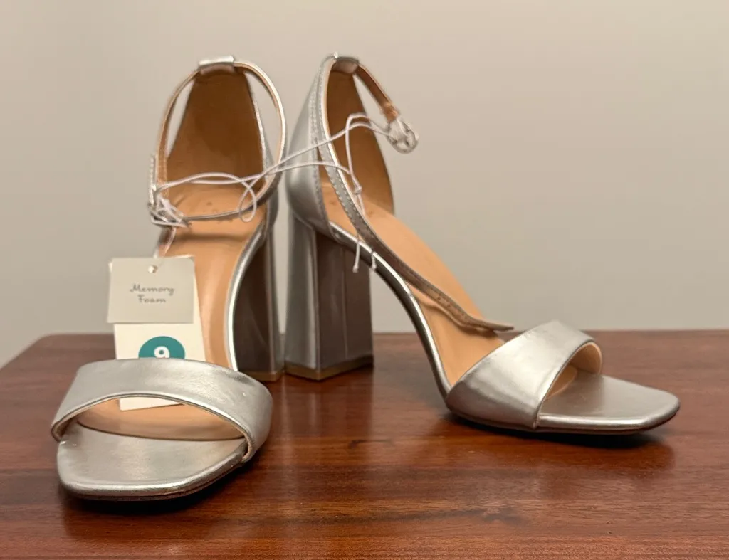 Step out in style with these elegant silver block heel sandals. Perfect for any occasion, these shoe... Show more