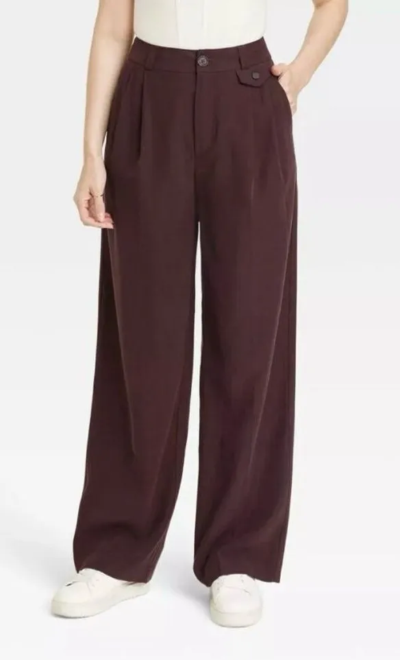 ✨A New Day Women's High-Rise Relaxed Fit Baggy Wide Leg Sz 8 Brown Trousers High-rise baggy t... Show more
