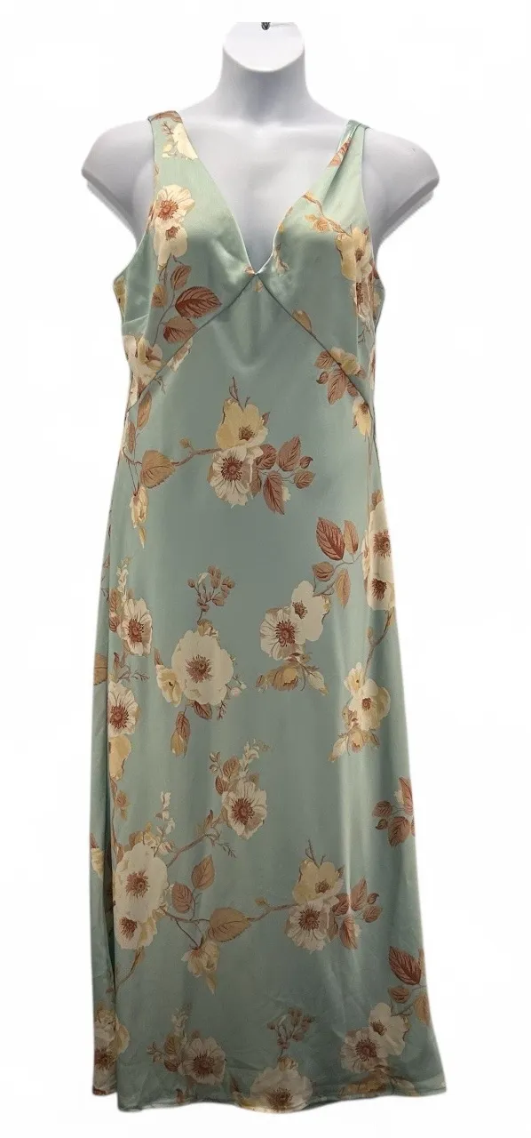 Whispers of spring come alive in this elegant slip dress. Draped in a flowing silhouette, the dress... Show more