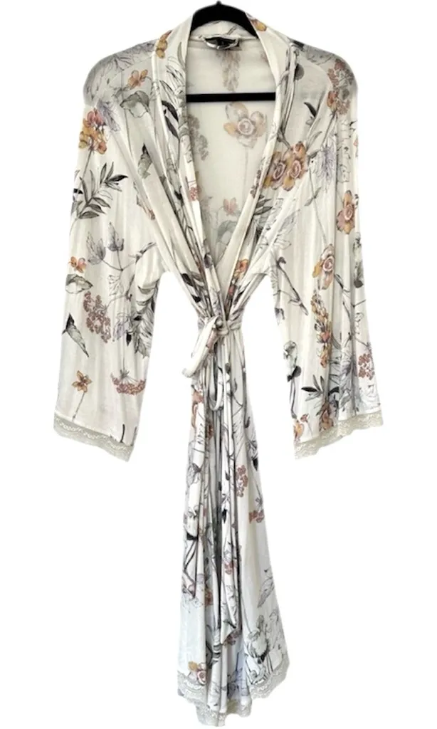 A Pea In The Pod Floral Print Crochet Lace Trim Rayon Robe Womens Medium Size undefined - $23 - From Hanna
