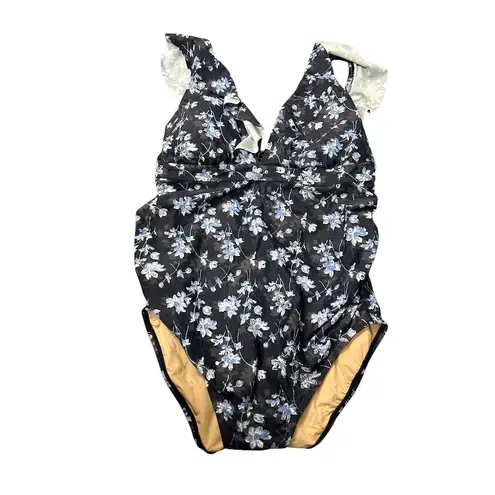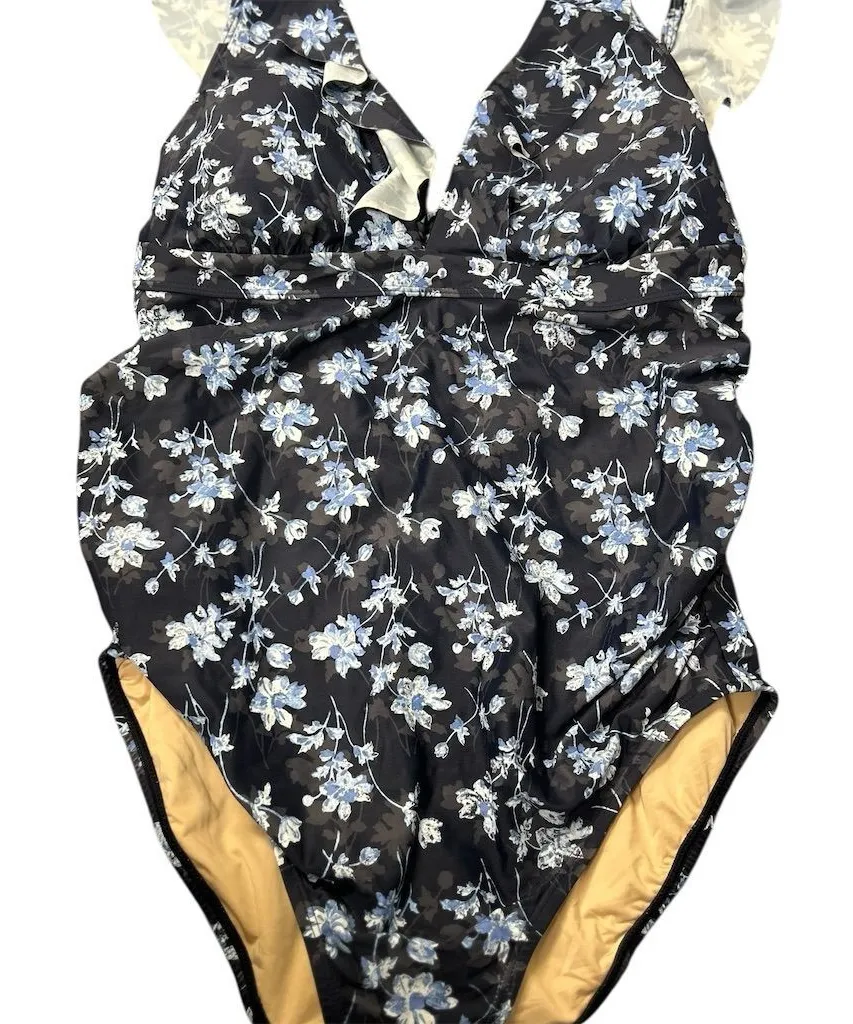 This A Pea in the Pod maternity one-piece swimsuit is designed for women in size medium. It features a blue floral pattern with ruffle details and a tie-back halter strap, offering medium coverage. Ideal for beach outings or poolside relaxation during pregnancy. The swimsuit is pre-owned. Keywords: maternity swimwear, one-piece swimsuit, floral pattern, blue swimsuit, ruffle details, tie-back, halter strap, medium coverage, beachwear, poolside, A Pea in the Pod, women's swimwear, pre-owned maternity, summer wear. Brand: A Pea in the Pod Type: One Piece Size: M Color: Blue Department: Women Theme: Floral Features: Ruffle, Tie-back, Medium coverage Pattern: Floral Strap type: Halter