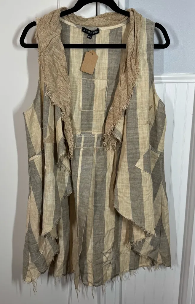 A Rare Bird Lagenlook Boho Linen Cotton Vest size medium large artsy layered Tan - $60 New With Tags - From Lauren