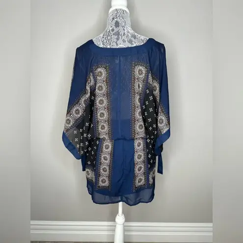 Pre-loved condition. Features V-Neck neckline, Kimono batwing tied sleeves, lined bottom, side zippe... Show more