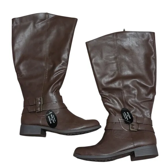 Brand new with tags from Style &Co. Brown knee high riding boots with dual buckle design at ankle,... Show more