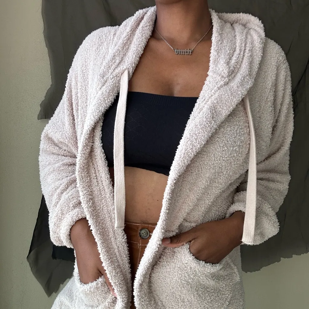 Urban Outfitters Out From Under Fuzzy Open Front Cardigan Size Small. UO fuzzy taupe open hooded car... Show more