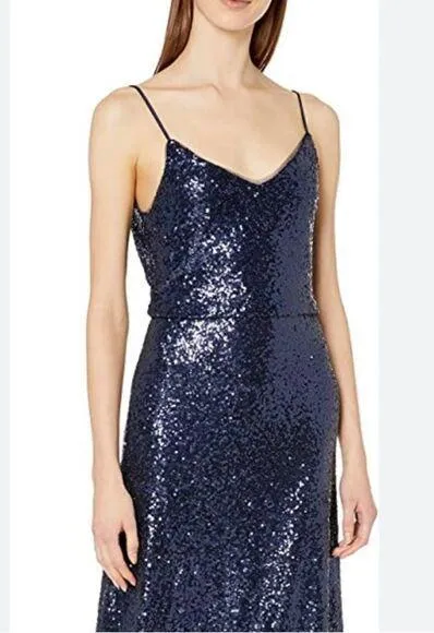 Jenny Yoo Sequin Cocktail Dress Navy blue All over sequins Blouson style bodice Spaghetti straps... Show more
