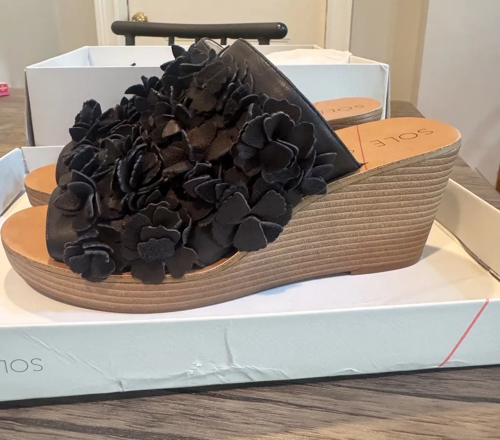 Sole Society Black Leather Floral Wedges 9 NIB - $35 New With Tags - From GypsyRiver