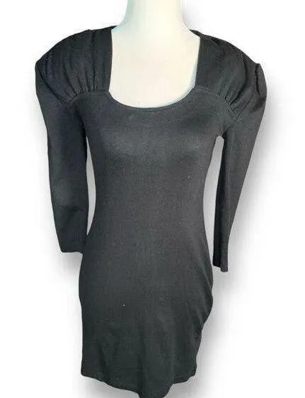Vintage Marnie West Little Black Mini Dress • Vintage Marnie West black mini dress in an acrylic and Lycra blend • Statement padded shoulders with gathered detailing for added structure • Squared off scoop neckline and fitted long sleeves • Made in the USA • Perfect for vintage , retro, and evening wear Tagged a size small fits like a modern XS Flat Lay Measurements 16.5 inches pit to pit 13 inch waist 17 inch hips 29.5 inch length Style Tags: Vintage Retro Bold Shoulder Statement Evening Body Con Special Occasion Bachelorette Las Vegas Girls Night Out Nightclub Going Out Fancy Feminine Minimalist Chic Design Little Black Dress LBD Sexy