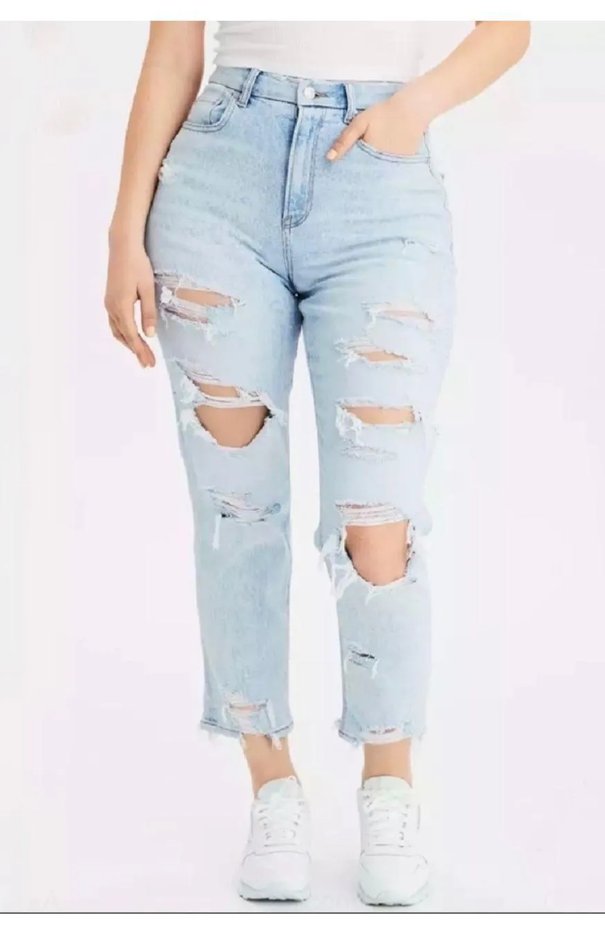 American Eagle Distressed curvy mom jeans Light wash Size 8 Short In excellent condition Strech