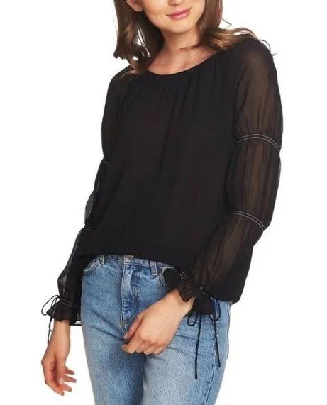 NWT Black long sleeve blouse from 1. State. Size XS with a loose fit. Features gathered detail on se... Show more