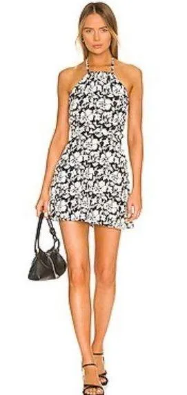 NWT Faithfull The Brand's mini dress has been made locally in Indonesia from lightweight FSC-certified crepe that's patterned with tropical blooms. It has a halterneck silhouette with ties framing the open back. Wear yours with heeled mules and a raffia clutch. • 100% rayon • Made in Indonesia • Hand wash • Fully lined • Halterneck and back tie closure • Back cut-out • Crepe fabric My measurements are a guide and only APPROX -Y2K, Summer, spring, striped, retro, 60s,, 80s, 90s, boho, bohemian, lightweight, airy, breezy, date, brunch, hollywood, celebrity, melrose, sustainable, eco-, conscious, eco friendly, fitted, a-line, fit & flare spring, retro, midi, thigh split, velvet, stretch, Revolve Saks, Bloomingdales, wedding, bridal, bride glamour, red carpet, designer, couture black tie celebration, prom homecoming celebrity holiday,Christmas, New Years Eve, pageant flattering, feminine, flirty, fitted, curvy, dual chromatic, forest, Lace, Sparkle, Neck, Frill, Romantic, Bardot, Travel, Blogger, Party, airy, bow, highwater, crop, high end, silk, runway, New Years, holidays party dress, night out, date night, ladies night, hippie,concert, hipster, music festival, fringes, embroidery, stripes, plunging, luxury, neckline ,Doen, Coachella, tomatoe girl, pinup, ROMANTICISM REDEFINED. Bloggers, luxury, runway, RTW favorite, Leather, suede, free people, urban outfitters, cowboy, western, tassles, Black tieNew Years Eve Gala Anthropologie, deep V neck, ulla Johnson,