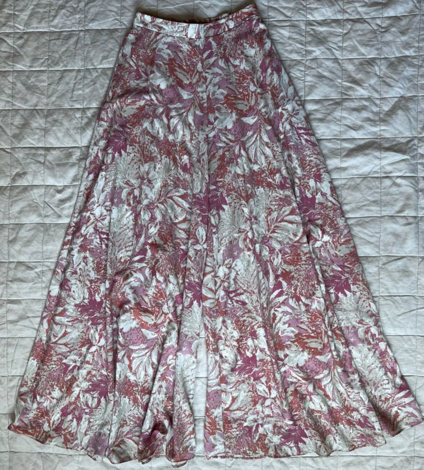 Aakaa Pink, Orange & Cream Floral High Rise Flowy Wide Leg Pants - Small Excellent condition, no f... Show more