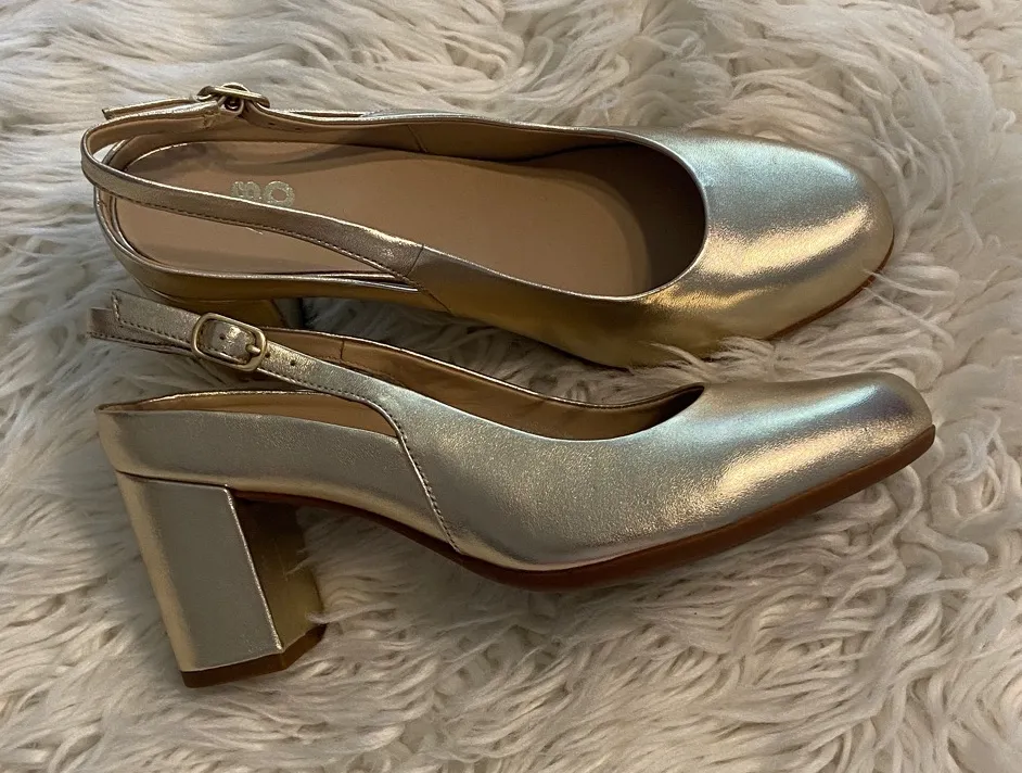 ABEO Tempo Sling Back 3844 Chic Gold Block Heel Women's Shoes BNWOT size 8 - $65 - From Nurfeta