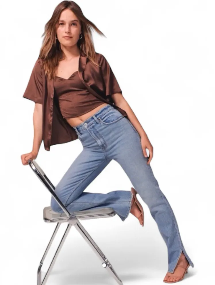 Abercrombie & Fitch The 90’s Straight Leg Ultra High Rise Light Blue Jeans Side Vents on Hemline Ex... Show more