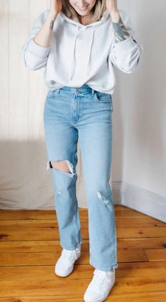 Abercrombie & Fitch 90’s Straight Ultra High Rise Distressed Jeans Size 2 (26) Short Inseam Great c... Show more