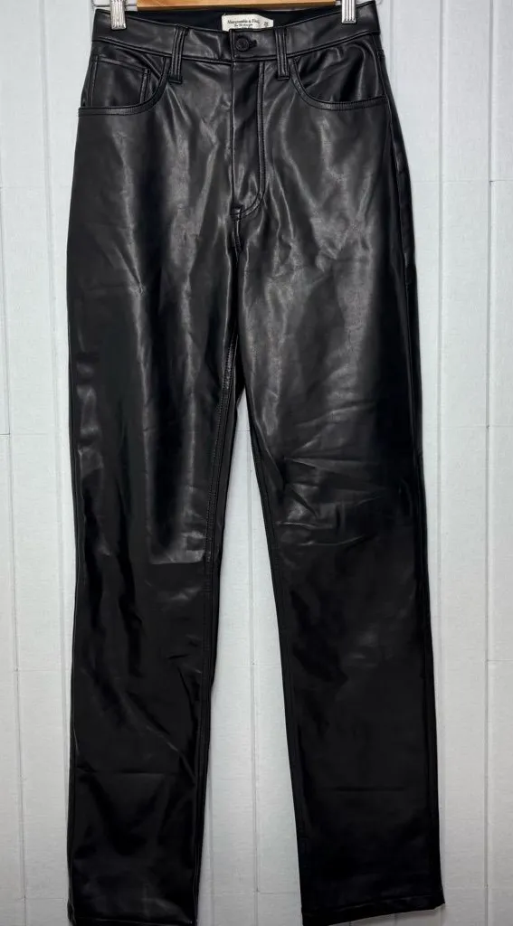 Chic charcoal faux leather trousers. Ultra high rise for a modern fit. Preowned like NEW condition S... Show more