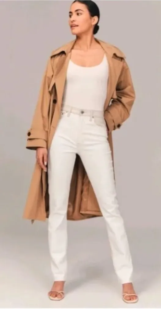 Abercrombie & Fitch 90s Straight Ultra High Rise Jeans Size 28 / 6 Cream with tan Faux Leather wais... Show more