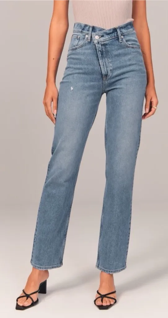 Abercrombie & Fitch jeans The 90’s straight ultra high rise Criss cross waist Asymmetrical waist Med... Show more