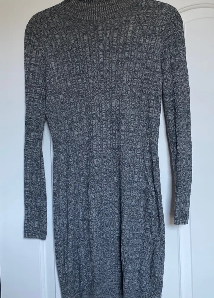 Long sleeve knit dress, worn just a few times, medium weight , black,white, gray, form fitting with... Show more