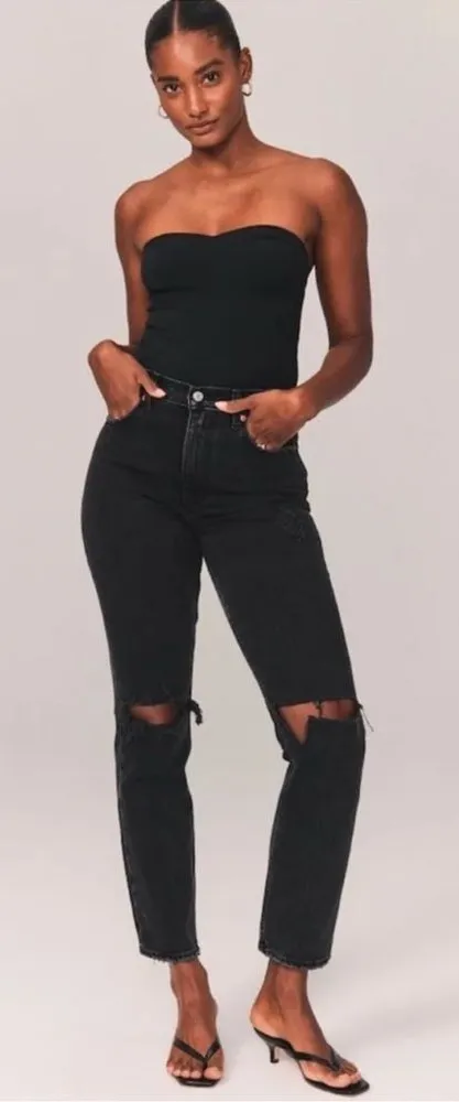 A&F Curve Love Ultra High Rise 90s Straight Jean in Black Destroy Distressed Excellent condition.... Show more