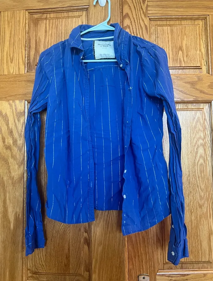 Classic and Y2K striped shirt by Abercrombie & Fitch. Ideal for everyday style. Size Large, but can... Show more