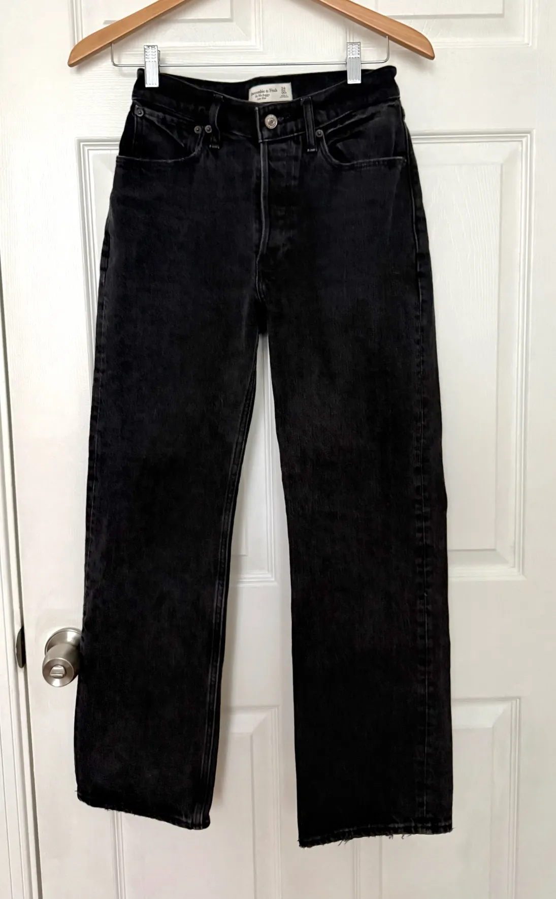 Abercrombie 90’s Low Rise Baggy Jeans in excellent condition! Black wash. Size is 24/00s