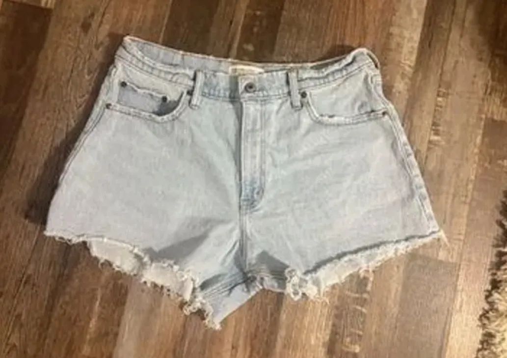 Abercrombie 90s relaxed cutoff denim shorts in a high-rise fit. Timeless denim staple with a comfort... Show more