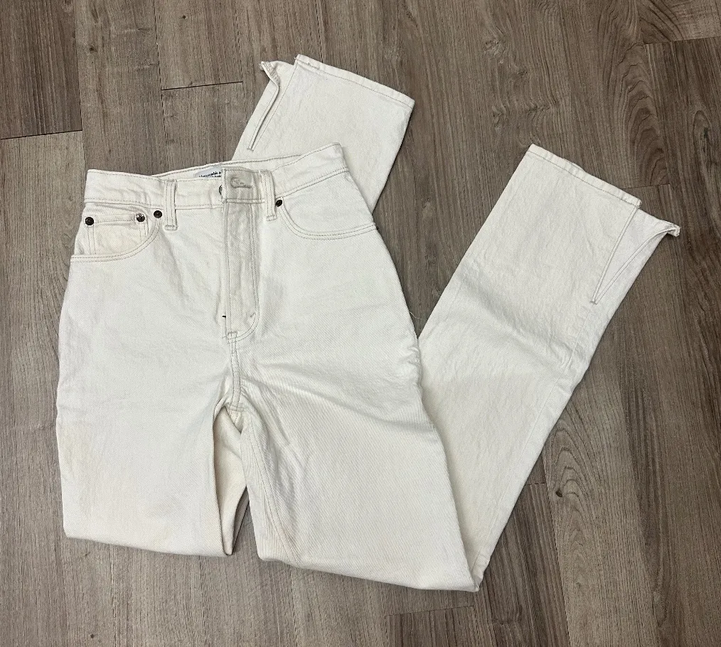 No Imperfections! Cream colored denim jeans. Abercrombie & Fitch the 90s Straight Ultra High Rise si... Show more