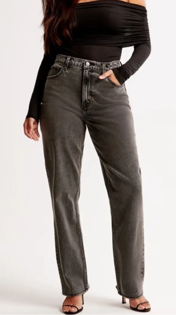 These are Abercrombie & Fitch the 90s straight curve love jeans in a women’s size 25 or 0 regular. T... Show more