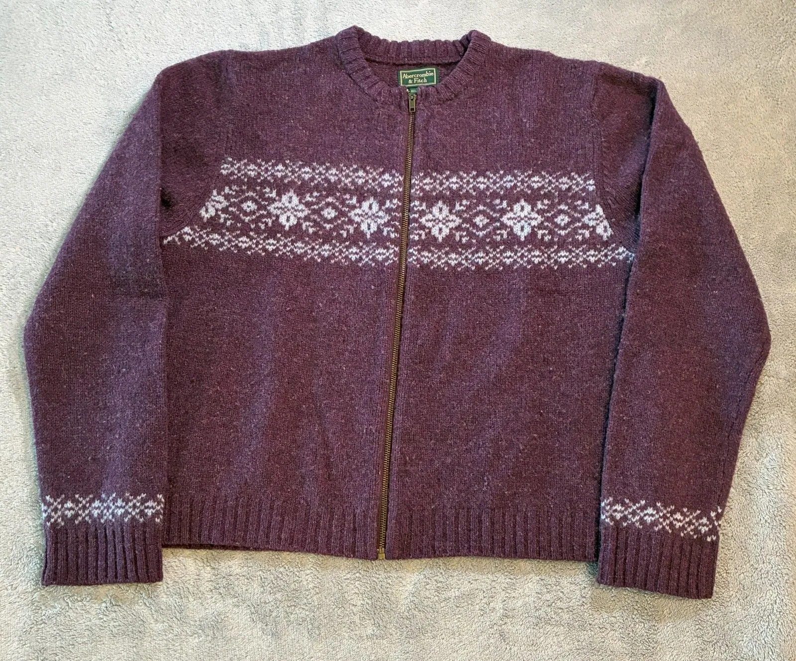Abercrombie and Fitch vintage 90's 100% Shetland wool cardigan. Full zip cardigan, fair isle Nordic... Show more